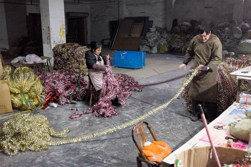 Περίπου το 60% από τα χριστουγεννιάτικα στολίδια του κόσμου προέρχονται από εργοστάσια γύρω από το Γίγου, στην επαρχία Τζετζιάνγκ, λίγο περισσότερο από μία ώρα από τη Σαγκάη.