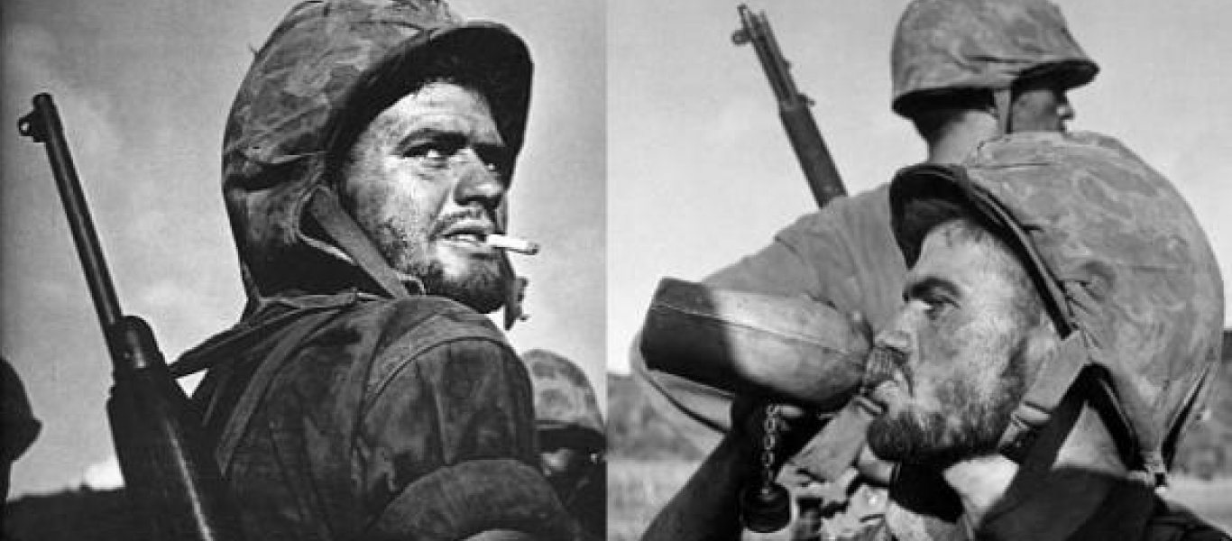 Η φωτογραφία, η οποία δημοσιεύθηκε στο περιοδικό «LIFE», έχει τραβηχτεί τη στιγμή που ένας Αμερικάνος στρατιώτης κάνει διάλειμμα απ’ τη μάχη, για να πιει νερό. Λίγο μετά ο πεζοναύτης γυρνά να κοιτάξει τον φωτογράφο, ενώ ένα αναμμένο τσιγάρο κρέμεται από τα χείλη του. Ευάγγελος Κλωνής