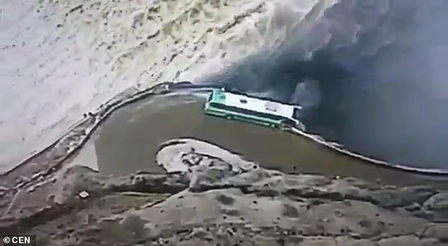 Αυτή είναι η στιγμή που σταματάει η καρδιά, αφήνεται ένα λεωφορείο να τρέχει πάνω από την άκρη μιας πεντακάθαρης πτώσης στα γρήγορα ρέοντα νερά σε μια σκηνή που θυμίζει την italian job.