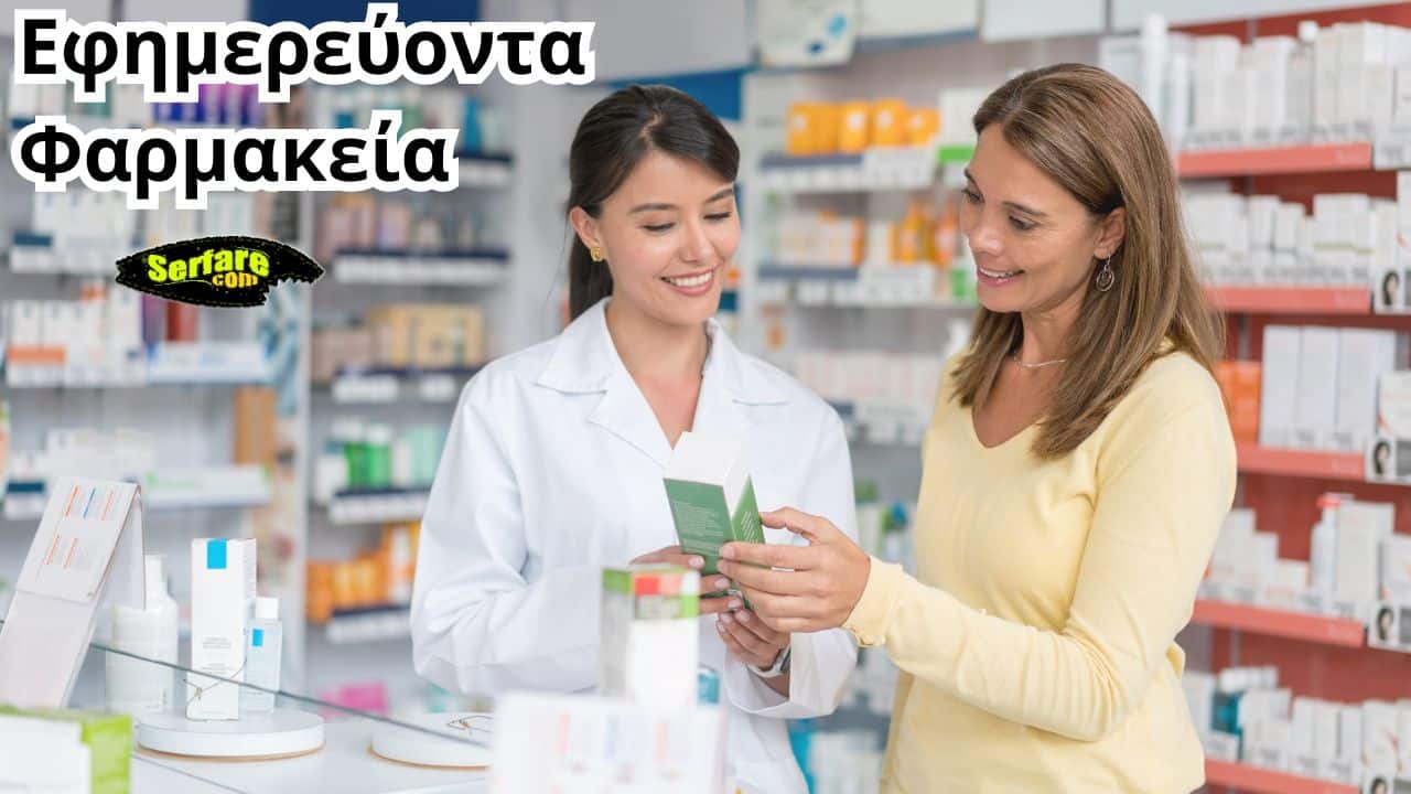 Εφημερεύοντα Φαρμακεία: Αθήνα, Θεσσαλονίκη, Πάτρα, Ηράκλειο, Λάρισα, Βόλος, Ιωάννινα, Τρίπολη, Χαλκίδα, Αλεξανδρούπολη, Σέρρες, Καβάλα, Κατερίνη, Βέροια, Κορυδαλλός, Κοζάνη, Ρόδος, Άρτα, Καλαμάτα, Πύργος, Κομοτηνή, Λαμία, Σπάρτη, Ναύπλιο, Ξάνθη, Ρέθυμνο, Κιλκίς, Καρδίτσα, Κέρκυρα, Τρίκαλα, Μυτιλήνη, Χανιά, Αγρίνιο, Κορίνθος, Δράμα, Ορεστιάδα, Πρέβεζα, Πτολεμαΐδα, Ναούσα, Σαλαμίνα, Ελευσίνα, Εδεσσα, Φλώρινα, Άργος, Άμφισσα, Μεσολόγγι, Γρεβενά, Παραλία, Λεβαδειά, Χίος, Νέα Σμύρνη, Καλύβια Θορικού, Πειραιάς, Περιστέρι, Καλλιθέα, Άγιος Νικόλαος, Κεφαλονιά, Ζάκυνθος… και πολλές άλλες.