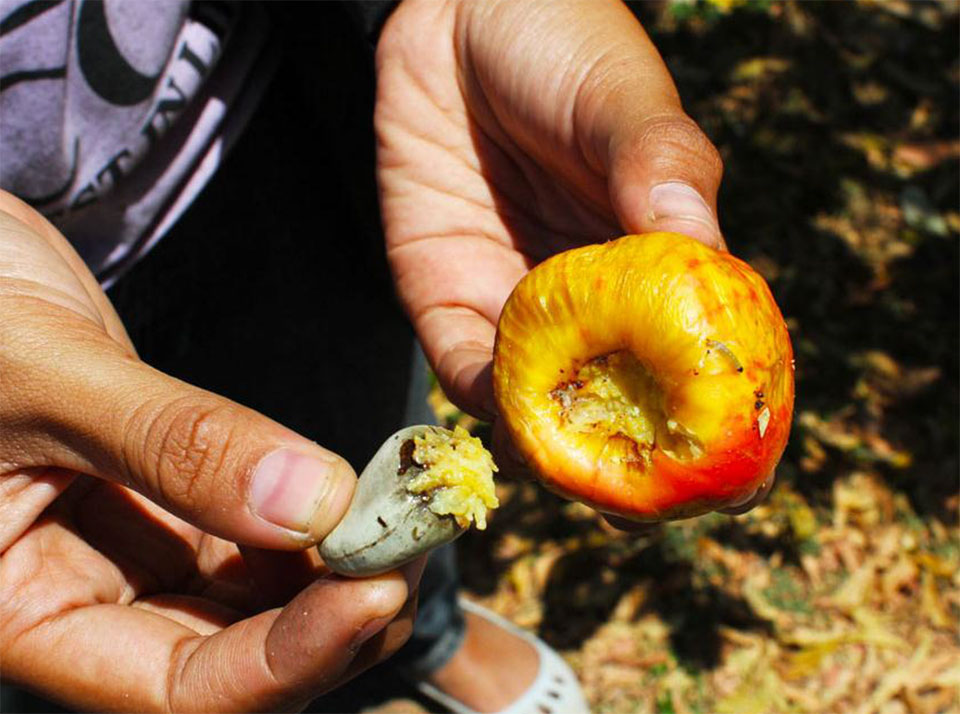 Κάθε καρπός φυτρώνει κολλημένος σε ένα… «ψεύτικο φρούτο», όπως αυτά που απεικονίζονται στις παρακάτω φωτογραφίες. Το κάσιους είναι ο κύριος καρπός του δέντρου και το φρούτο είναι ένα υποπροϊόν, ωστόσο και εκείνο είναι βρώσιμο!