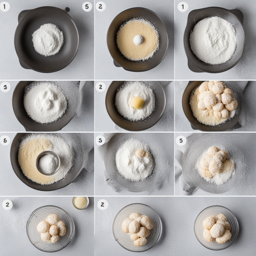 - Σχηματισμός Κουραμπιέδων: Πάρτε μικρές ποσότητες από το μείγμα και δώστε τους τη μορφή που επιθυμείτε (συνήθως στρογγυλή ή οβάλ).