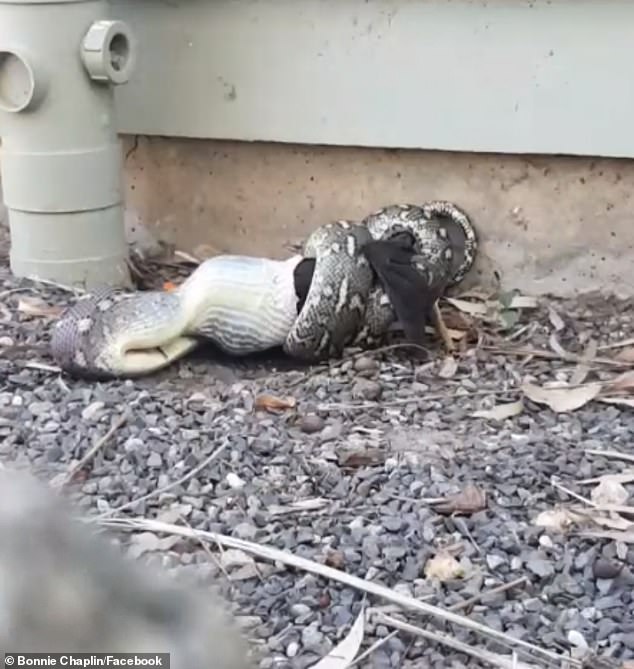 Η Bonnie Chaplin, από το Bundaberg στο Queensland, είδε έναν πυθώνα που έτρωγε τη λεία της κατά τη διάρκεια ενός ολόκληρου πρωινού την περασμένη Τετάρτη.
