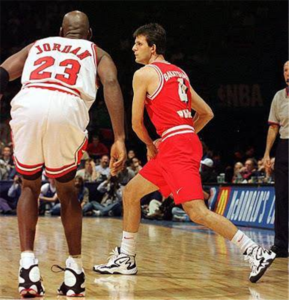 Το απόλαυσαν και το θυμούνται ακόμη, θρυλικό στιγμιότυπο ο Μάικλ Τζόρνταν προσπαθεί να μαρκάρει τον Μπακατσιά και αυτός του κάνει προσποίηση. Τι σημασία έχει ποιος νίκησε, ο Θύμιος έκανε προσποίηση στον Αιρ Τζόρνταν.