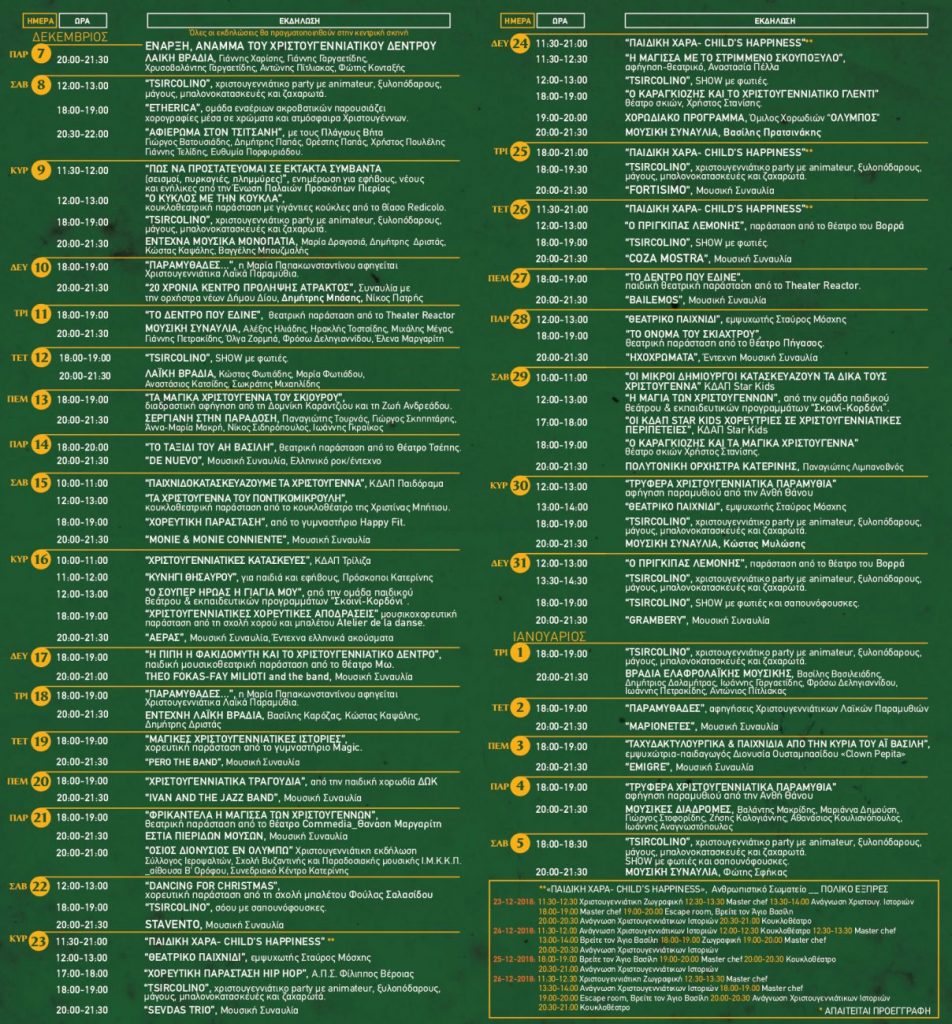 Δεν θα μπορούσαν να λείπουν το σπίτι και το εργαστήρι του Αϊ-Βασίλη, η «Αστερούπολη», η «Ευχούπολη» και ένα «Μαγεμένο Δάσος» τα οποία συμπληρώνουν τη χριστουγεννιάτικη εικόνα, όπως επίσης και τα περίπτερα με τα παραδοσιακά προϊόντα της Πιερίας. Πάρκο των Χρωμάτων Κατερίνη