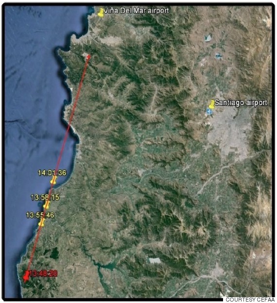 Στις 11 Νοεμβρίου 2014, ελικόπτερο του χιλιανού ναυτικού (Airbus Cougar AS-532) ήταν σε αποστολή ρουτίνας κατά τη διάρκεια της ημέρας, πετώντας βόρεια κατά μήκος της ακτής, δυτικά του Σαντιάγκο. Σε αυτό επέβαιναν ο πιλότος, ένας πλοίαρχος του Ναυτικού με πολλά χρόνια εμπειρίας πτήσεων, και ένας τεχνικός του Ναυτικού που δοκίμαζε μια WESCAM MX-15 HD FLIR κάμερα, που πολύ συχνά χρησιμοποιείται για «συγκαλυμμένη συλλογή πληροφοριών μέσου ύψους, παρακολούθηση και αναγνώριση», σύμφωνα με την ιστοσελίδα της συσκευής. Το αεροσκάφος πετούσε σε ύψος περίπου 4.500 ποδών ένα απόγευμα με καθαρό καιρό, με απεριόριστη οριζόντια ορατότητα, και θερμοκρασία αέρος 10 βαθμούς Κελσίου. Το ελικόπτερο πετούσε στους 132 κόμβους.
