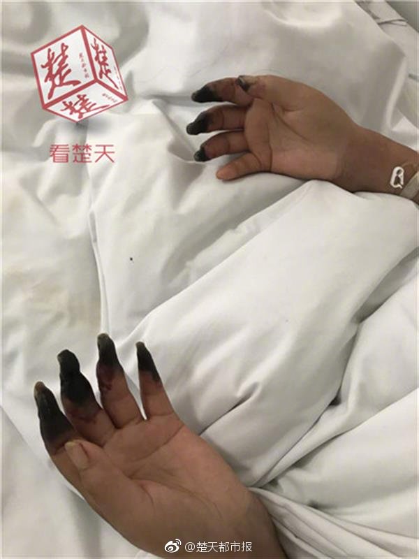 Αυτό αρχικά δεν ήταν αιτία για συναγερμό μέχρι να αρχίσει να εξαπλώνεται. Μέσα σε λίγες μέρες, όλα τα δάχτυλά έγιναν ροζ και μετά εντελός μαύρα! Ξαφνιασμένη, η κ. Zhang πήγε να ζητήσει βοήθεια από έναν κοντινό γιατρό.