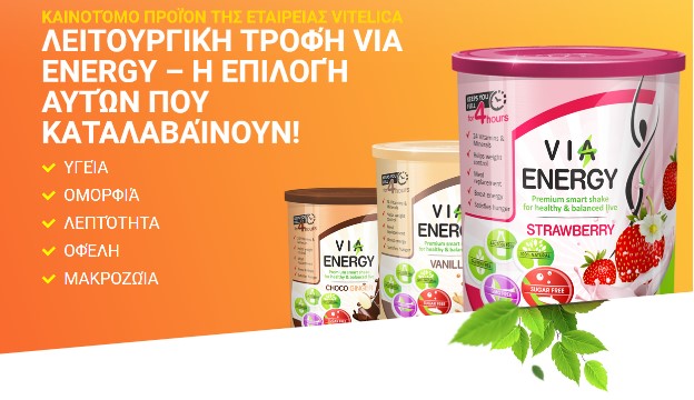 Με δύο λόγια, το VIA ENERGY είναι το πιο έξυπνο γεύμα, που δημιουργήθηκε ειδικά για όσους προσέχουν την υγεία τους! Ξεκινήστε σήμερα και θα ενθουσιαστείτε με το αποτέλεσμα!