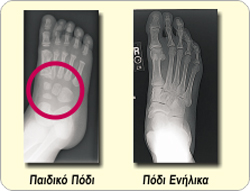 Το παιδικό πόδι δεν διαθέτει ακόμα τα 26 οστά όπως το πόδι ενός ενήλικα αλλά περιέχει εύπλαστους χόνδρους οι οποίοι χρειάζονται πολλά χρόνια μέχρι να μετατραπούν σε οστό.
