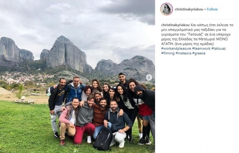 “Και κάπως έτσι έκλεισε το μίνι επαγγελματικό μας ταξιδάκι για τα γυρίσματα του “Τατουάζ” σε ένα υπέροχο μέρος της Ελλάδας τα Μετέωρα! ΜΟΝΟ ΑΓΑΠΗ. (ένα μέρος της ομάδας)”, έγραψε στη λεζάντα που συνόδευε την φωτογραφία που “ανέβασε” η Χριστίνα Κυριακού.