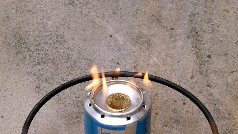 3.4 Τοποθετήστε τα δύο διακλαδωμένα δοχεία στο μεταλλικό στήριγμα και ρίξτε λίγο αιθανόλη μέσα σε αυτό. Τοποθετήστε ένα νόμισμα στο κάτω μέρος του δοχείου.