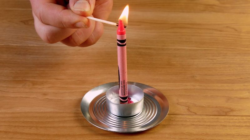Στη συνέχεια, λειώστε το κάτω μέρος του πλέγματος έτσι ώστε το κραγιόν να κολλήσει στη βάση κεριού. Τώρα το μόνο που έχετε να κάνετε είναι να ανάψετε την άκρη του κραγιόν και να αφήσετε να υπάρχει φως!